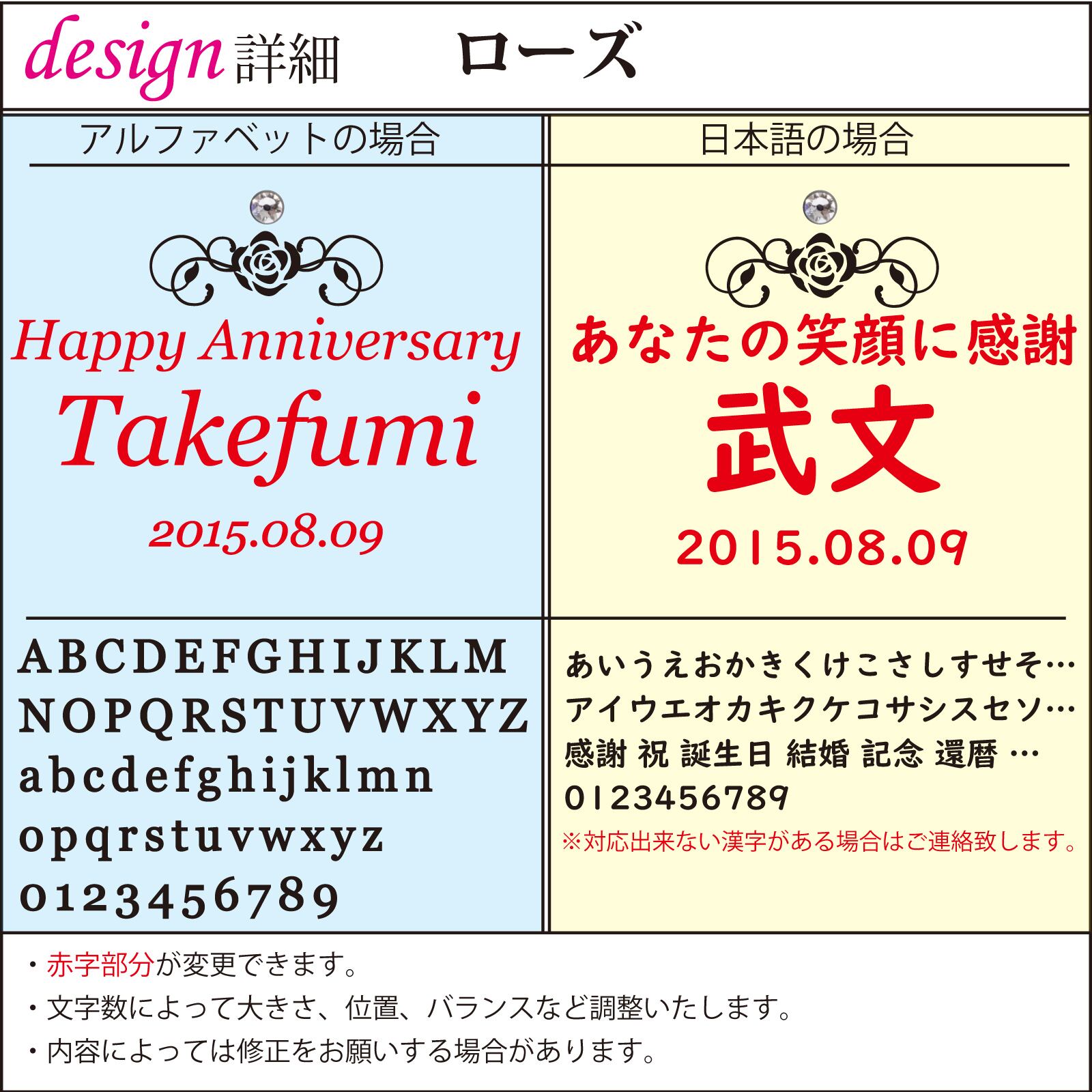 当店では一つのデザイン内で日本語とアルファベット、数字を織り交ぜて彫刻することで