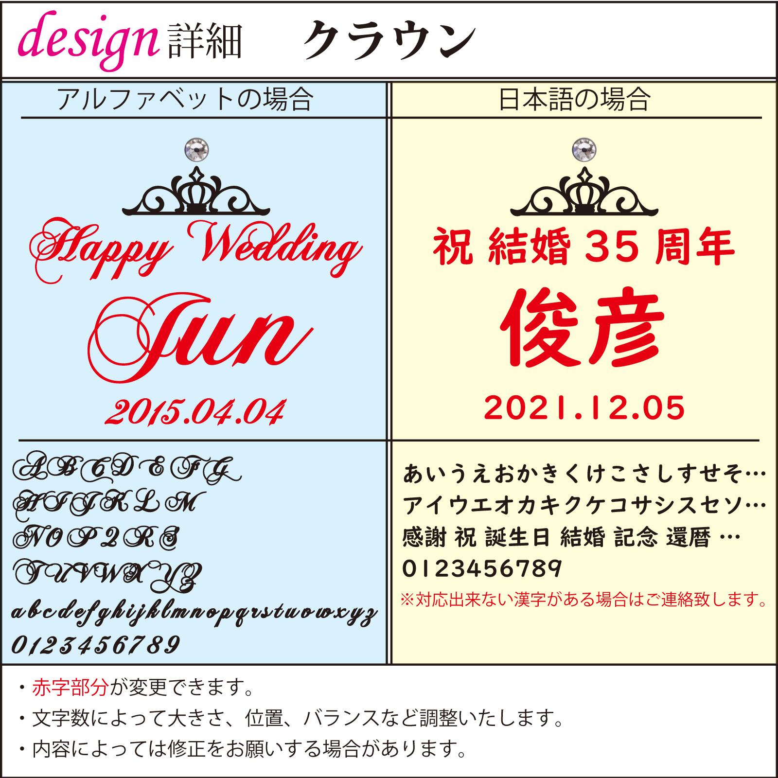 例)デザインはクラウン、フォントはハートのフォントでお願いします。